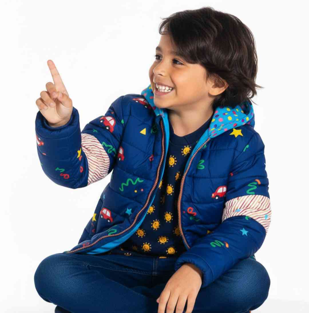 When cooler temps come your way, there’s nothing your little explorer will like more than the contemporary feel of this Cherry Crumble jacket. Pair this blue reversible jacket with cuffed chinos and a comfy tee for family gatherings or casual outings.