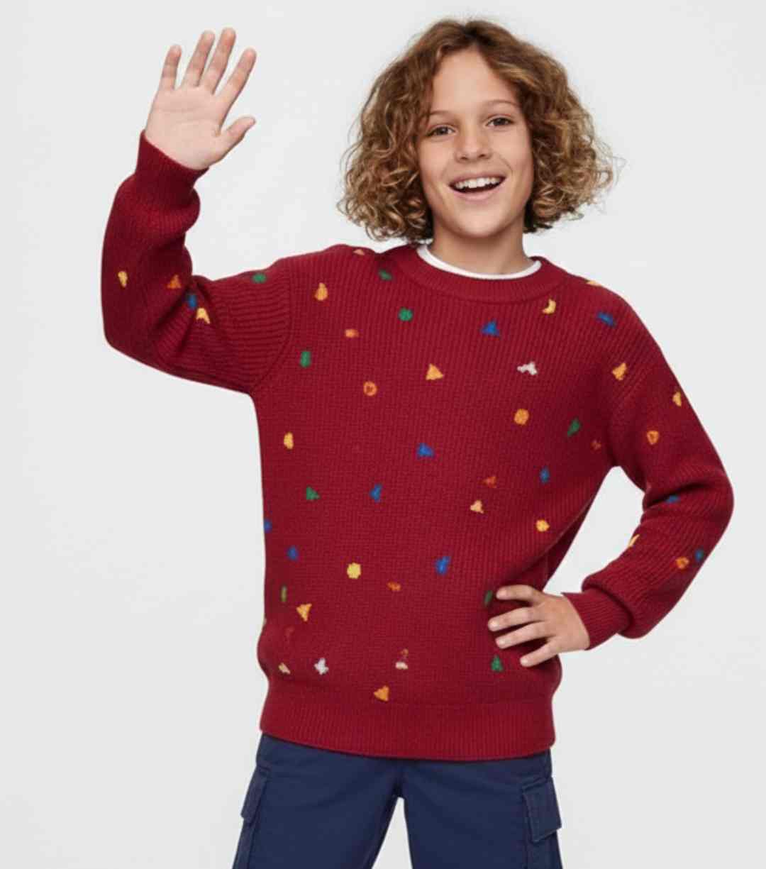 Multicoloured colourblocked pullover designed to keep kids warm and stylish. It features a classic round neck, long sleeves, ribbed hem and a comfortable pullover style. Perfect for everyday winter wear.