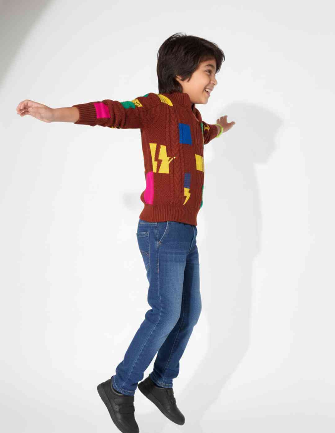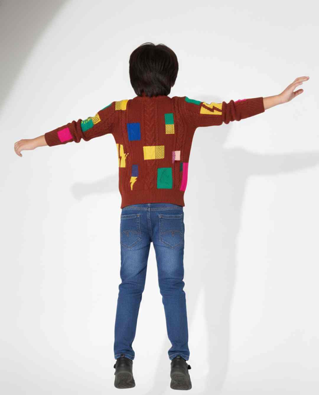 - White, navy blue & brown colourblocked sweater