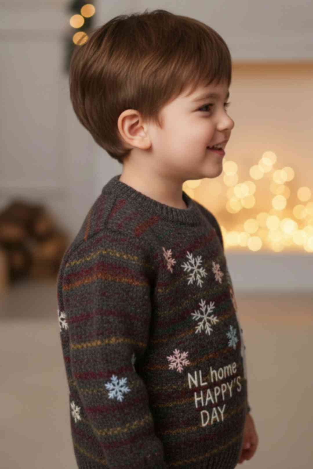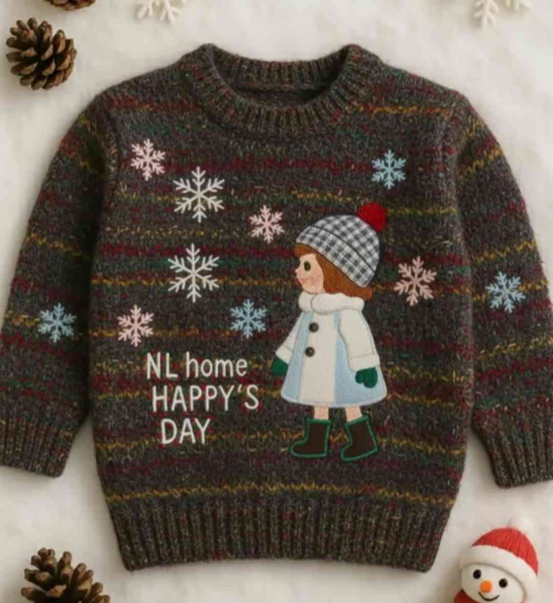 Blue striped pullover featuring a classic round neck, long sleeves for warmth, and a ribbed hem for a snug fit.