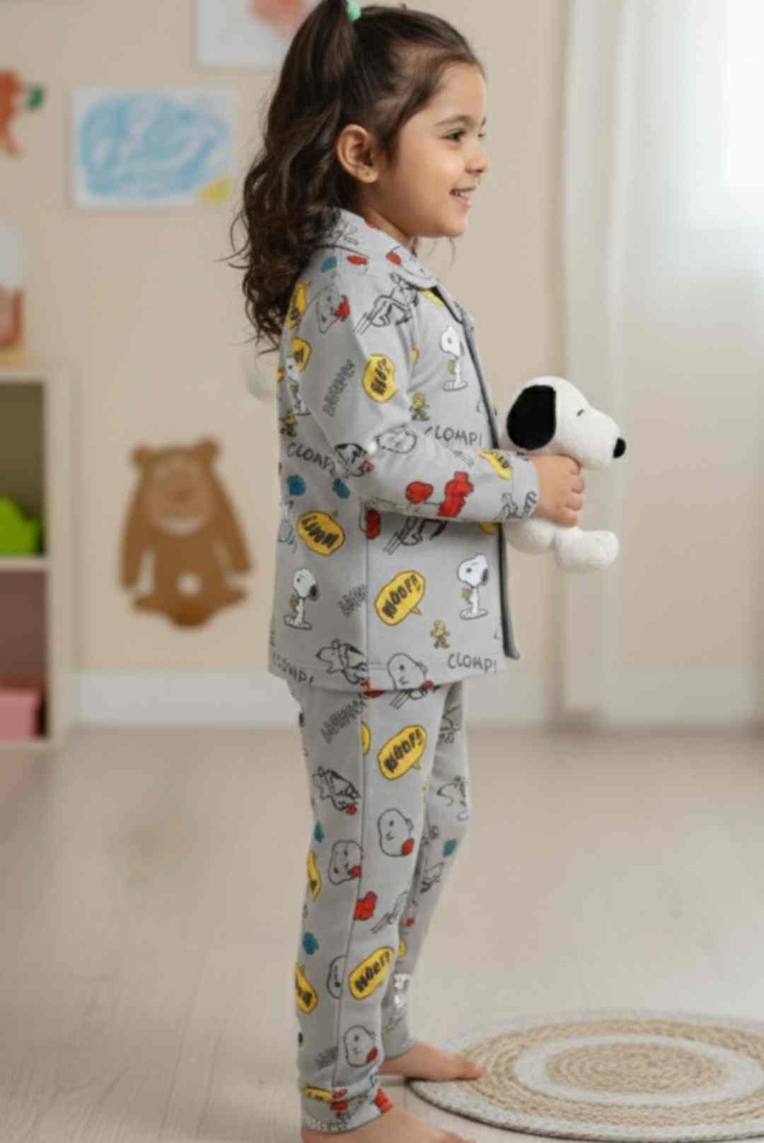 Make your relaxed time high on style by slipping into this adorable Snoopy night suit. Crafted from the softest pure cotton fabric, this plush yet comfy set delivers all-night comfort with a fun, playful vibe.